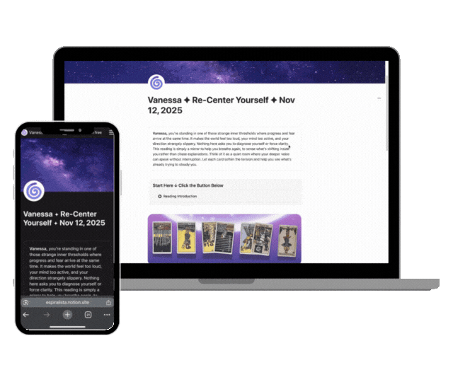 I spent seven years in corporate building systems that translated complexity into clarity. Then I got fired while on maternity leave and had to face the patterns I couldn't see... the ways I'd been living for external validation instead of my own truth.Therapy gave me tools. Tarot gave me insights. But neither alone could give me the breakthroughs I needed when I was drowning in decision fatigue and second-guessing everything.So I built what I wish I'd had: a system that merges spiritual practice, pattern recognition, and thoughtful design to help you see what you're too close to see.You don't need someone who's memorized card meanings. You need someone who's lived through the fog and knows how to help you find your way out.